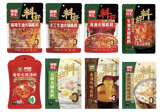做出健康化升级的锅圈底料并非只有牛油锅底这一款。目前在售的锅圈火锅底料中,包括川麻小方砖、清油、重庆老炮、藤椒、番茄等在内的多种口味产品,都在近期进行了产品升级,并在包装的显眼位置做出了零添加标识。