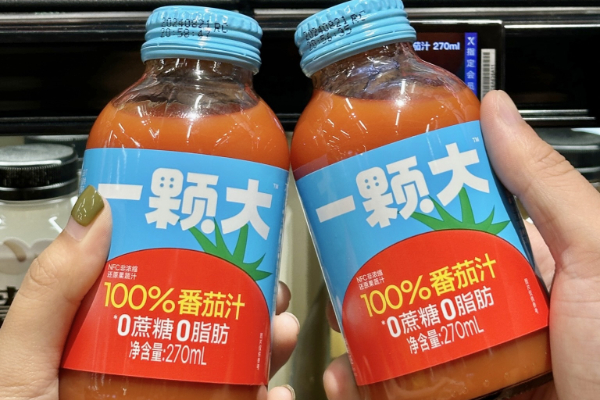 对消费者的关注,为产品品类拓展提供了方向。2023年中,通过数据分析,一颗大™发现店内复购率高的老客户同时也是番茄汁的消费客群,且核心消费者对纯果蔬汁、功效饮品等类目的兴趣度上升。一颗大™迅速响应,发挥原料优势,快速推出了一款“配料只有番茄、不加一滴水”的100%番茄汁。如今,该产品已成为盒马、京东等平台爆品,屡次登上品类榜首,并获得了沙利文“100%NFC番茄汁全国销量第一”认定。