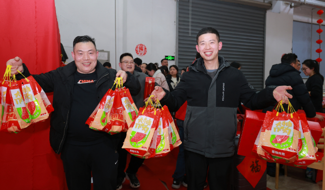 除了红包分房和奖品,今年娃哈哈还给每位员工准备了一份特别的“头彩”——两颗柚子。礼物虽轻,但很有意义。柚寓意“佑”,既是新年的美好祝福,也蕴含着公司对员工的期许:始终保持饱满的热情和积极进取的精神,在新时代的浪潮中不断提升自我,在企业的广阔舞台上大“柚”作为。