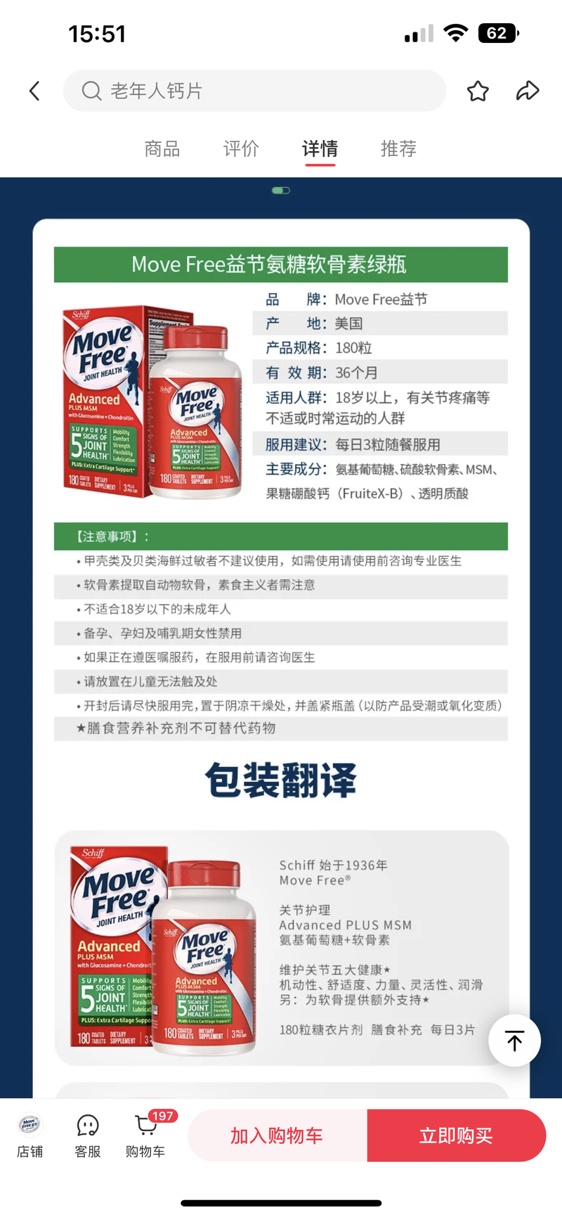 “二甲基砜MSM虽不是一种纯粹的止痛药,但确实有一定改善疼痛的效果。”该医生表示,Move Free作为一种国外品牌,在国内通过电商形式售卖,包括多种类型,有添加钙剂、氨糖软骨素、有止疼效果的药物,但其最基础的原料仍是氨基葡萄糖(简称氨糖)。
