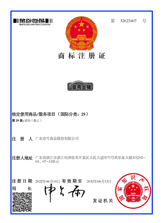 壹号食品公司总裁黎小兵现场展示了国家知识产权局核发的“壹号土猪”图形商标注册证书,并回应称,壹号食品的初衷是想将埋没在农村的优质土产品推向消费者,在2009年就申请注册了“壹号土”商标,后来随着公司壹号土猪品牌的消费者认可度越来越高,于是正式申请注册了“壹号土猪”(注册号“52623407”)的图形商标,目前市场使用的也是这个图形商标,没想到给广大的消费者造成了误会。