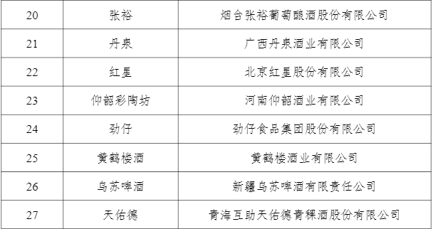 此外,在43个区域品牌中,涉及酒业为“赤水河谷中国酱香”,在中国消费名品成长企业名单中,三沟、李渡酒、云门、稻花香、黄关、桥畔、西鸽酒庄、国菲等涉酒品牌在列。