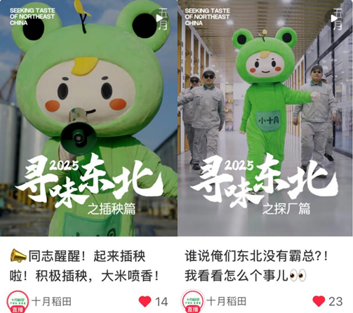 在健康中国战略背景下,人们健康饮食需求逐年增长,绿色、健康食品越来越受到关注。今年插秧节,十月稻田再次回到了五常原产地,以“寻味东北之真香时刻”为主题,以一组“稻田里的青春派”新农人态度海报,开启了2025年插秧节产地溯源之旅。在小红书、抖音等社交媒体平台上,不仅以“小十月”IP形象带领大家插秧探厂,了解插秧节各种有趣细节,更有两位联合创始人王兵、赵文君以个人IP账号为载体,通过“寻味东北”系列视频直观为用户展示插秧过程及农耕文化,传递扎根三农的信心。