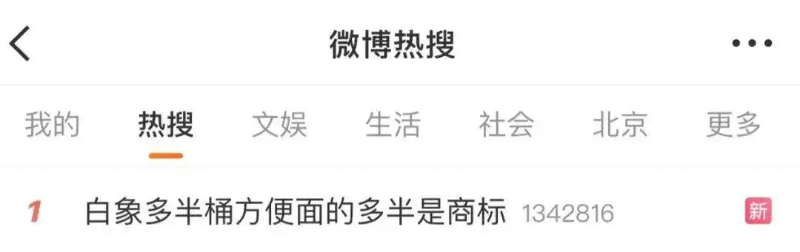 近日,话题#白象多半桶方便面的多半是商标#,冲上热搜第一。