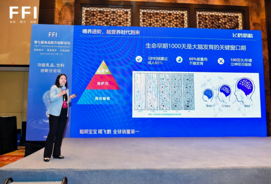 在主题报告中,李菊芳从飞鹤的科研创新成果、全生命周期功能营养品布局等维度进行了分享,并以星飞帆卓睿助力“聪明”宝宝养成、爱本跃动蛋白“强壮”中国人为例,深入解读飞鹤针对不同人群的产品创新研发路径。