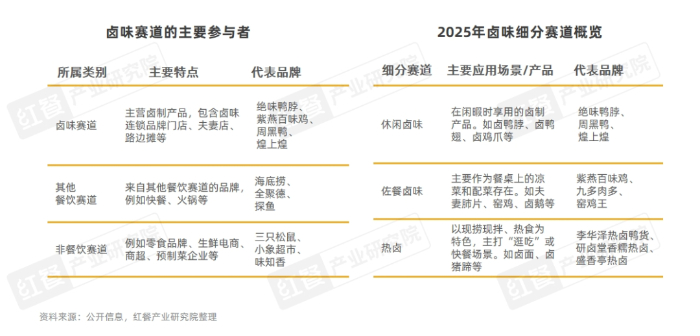 根据不同的消费场景,卤味赛道又可进一步细分为休闲卤味、佐餐卤味和热卤三大细分赛道。其中,休闲卤味多为消费者在闲暇时享用的卤制产品;佐餐卤味通常是餐桌上的凉菜和配菜;热卤则以现捞现拌、热食为特色,主打“逛吃”或快餐场景。