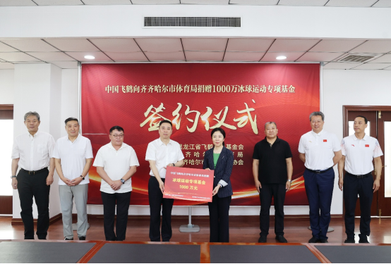 7月23日,中国飞鹤向齐齐哈尔市体育局捐赠1000万冰球运动专项基金签约仪式于黑龙江齐齐哈尔市政府举行。中国飞鹤通过黑龙江省飞鹤慈善基金会,委托齐齐哈尔体育局设立总额1000万元的冰球运动专项基金,将从今年开始以十年为期,每年向市体育局捐赠65万元现金和35万元营养品,合计每年100万元,,用于冰球体育运动员的培养等。