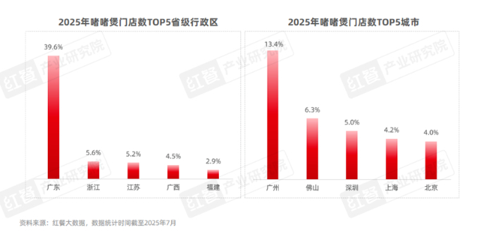 具体到城市来看,2025年啫啫煲门店数排名前五的城市分别为广州、佛山、深圳、北京、上海,其中广州、佛山、深圳的门店数合计占到全国门店数的24.7%。