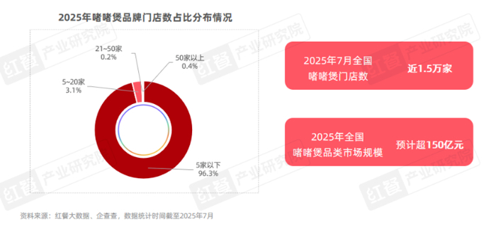 随着入局者的增加,啫啫煲赛道也在不断扩容。红餐大数据显示,截至2025年7月,全国啫啫煲门店数已接近1.5万家,预计2025年全国啫啫煲品类市场规模将超过150亿元。