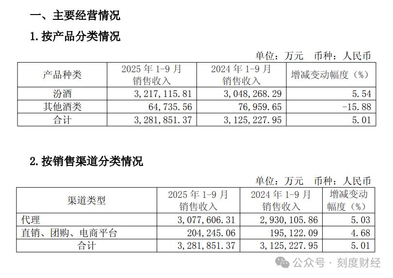 2025年前三季度,汾酒系列实现销售收入321.71亿元,同比去年增长5.54%,成为营收贡献主力,其他酒类实现销售收入6.47亿元。