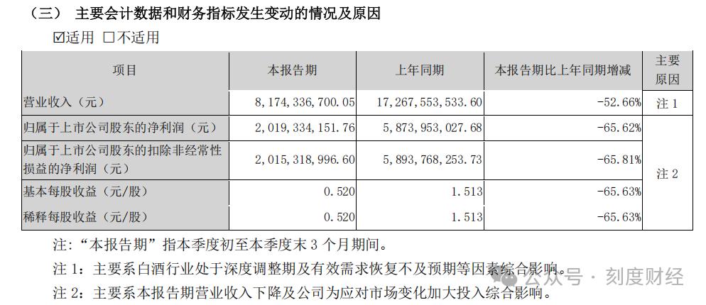 这是五粮液自2015年以来首次出现营收负增长,净利润增速也创下2016年以来的最低水平。