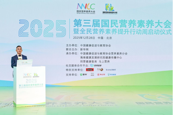 新华网北京12月28日电(记者王忻)12月28日,第三届国民营养素养大会在京举办。本届大会以“营养提素养,健康向未来”为主题,由中国健康促进与教育协会、新华网联合主办,中国健康促进与教育协会营养素养分会、海南健康发展研究院健康传播中心、同营健康智库、马上营养共同承办。来自营养学、公共卫生、健康传播等领域的专家学者,以及企业、媒体代表齐聚一堂,通过权威报告发布、热点议题研讨和产业实践交流,为国民营养素养提升与“健康中国”建设注入强劲动力。