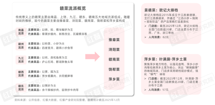据红餐大数据,截至2025年12月,小江溪·江西小炒全国门店数超过160家,远超其他同类品牌。阿姆源、赣乡野、蓝边碗、打平伙·鲜辣小炒均超过40家。此外,欧记大排档以烧烤融合正餐与宵夜场景,拓展消费时段,当前全国门店数超过20家。胡恰·景德江西菜聚焦景德镇地域风味,强化文化标签,当前全国门店数同样超过20家;而春天来了、炉忆等则锚定100元以上的人均消费,门店数分别有约8家、约5家。