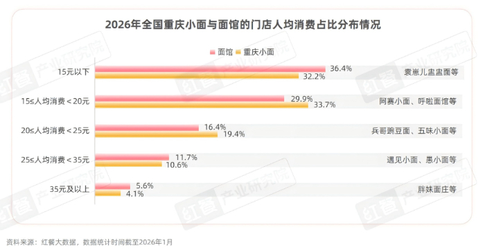 3.超六成重庆小面门店人均消费在20元以下,部分品牌探索更高价格带