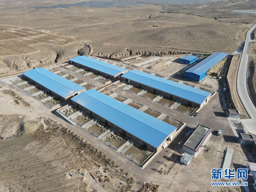 这是1月7日拍摄的宁夏吴忠市红寺堡区龙源村滩羊产业科技扶贫基地(无人机照片)。新华社记者 唐如峰 摄