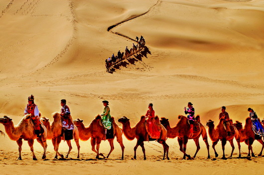 黑城建于公元九世纪西夏政权时期,成吉思汗率蒙古军第四次南征攻破黑城后,元世祖在此设亦集乃路总管府,使这里成为中原到漠北的交通枢纽,意大利著名旅行家马可·波罗就是骑着骆驼沿着这条古道走进了“东方天堂”。黑城后来因水源枯竭,周边地区沙化严重,在14世纪中期就已成为沙海中的孤城残址。