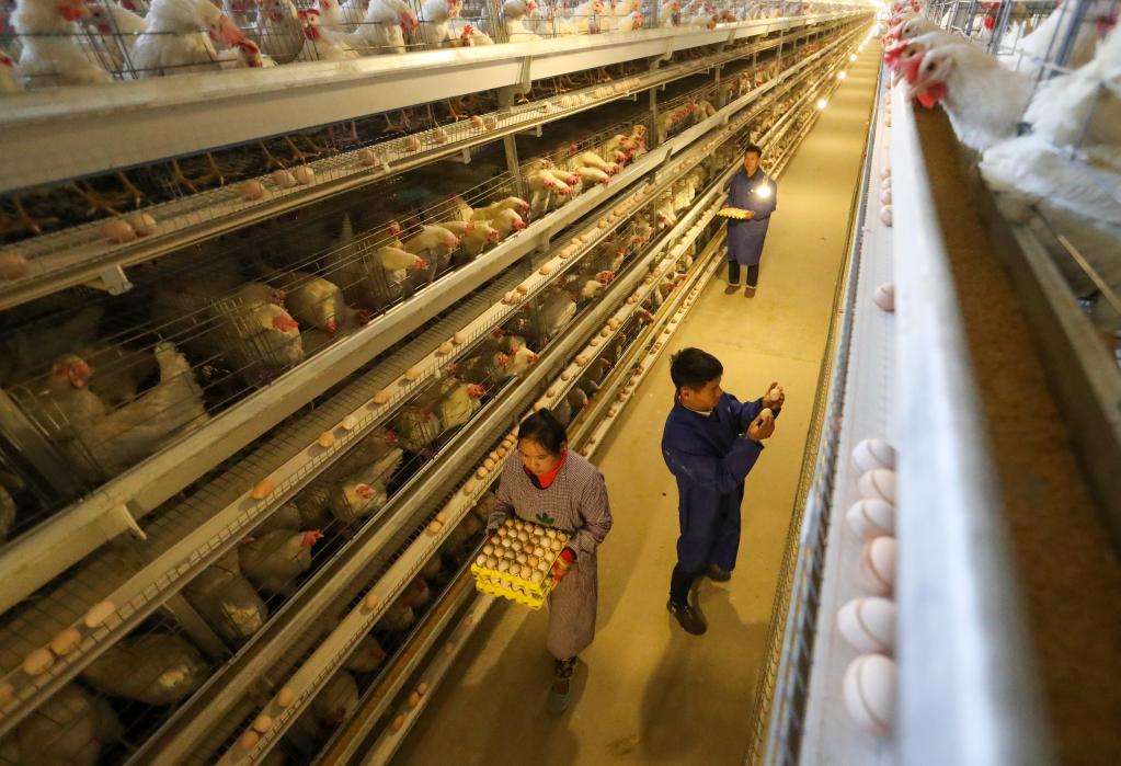 2021年1月8日,在贵州省铜仁市大龙经济开发区一家蛋鸡养殖企业,工作人员在精选鸡蛋。新华社发(胡攀学摄)