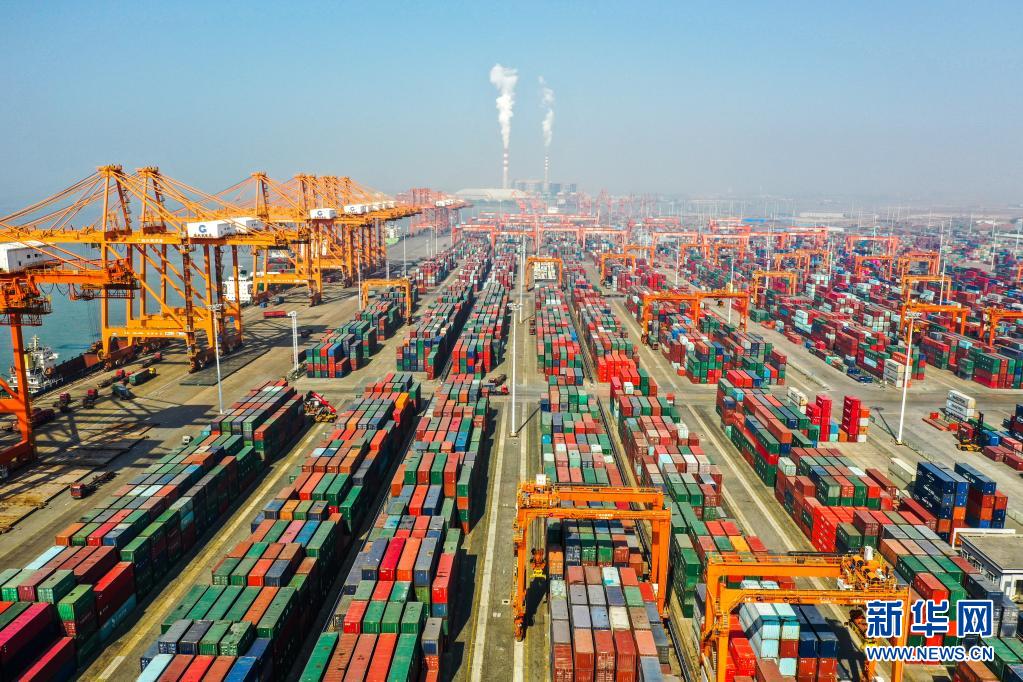 这是广西钦州港集装箱码头(无人机照片,1月14日摄)。新华社记者 曹祎铭 摄