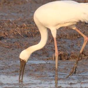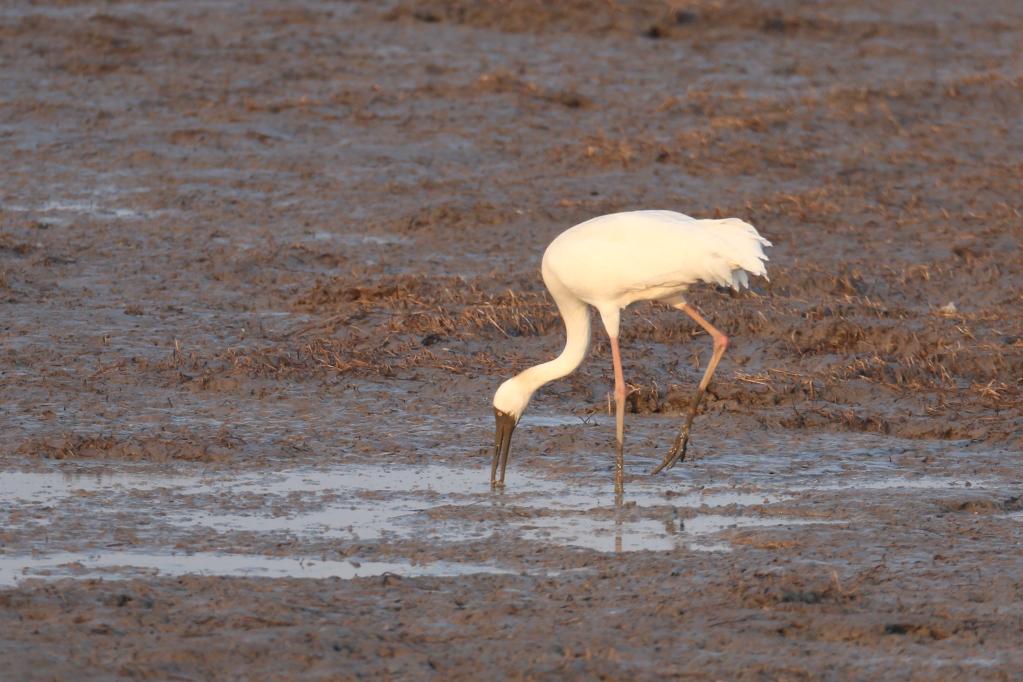 国家一级重点保护动物白鹤来到崇明东滩,这是崇明东滩时隔4年再次记录到白鹤。(上海市崇明东滩自然保护区管理事务中心供图)