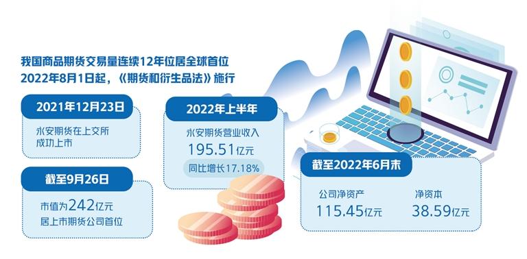 2021年12月23日,永安期货在上交所成功上市,截至9月26日,市值为242亿元,居上市期货公司首位。