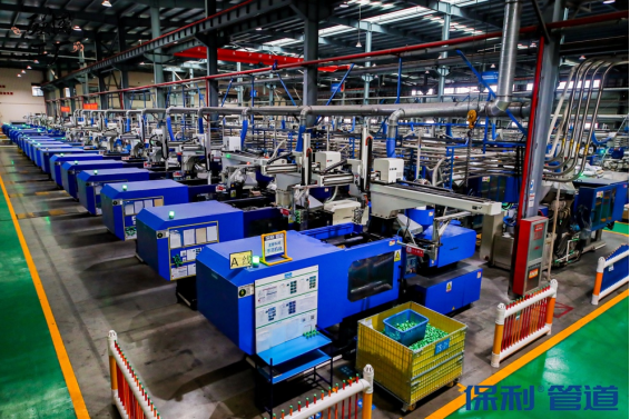 注塑车间是湖州生产基地自动化程度最高、智能管理体系体现最明显的生产车间。目前PPR注塑车间拥有110台PPR注塑管件机,自动化覆盖率高达95%。此外,车间还大量采用机器人模式,一“人”多用,生产效率更高、产品品质更稳定,同时也大大降低了人工成本,从源头把控了质量。