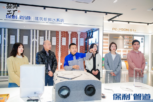 据浙江爱康实业有限公司常务副总助理代强介绍,爱康企业集团湖州生产基地占地193000平方米,生产线围绕保利管道、开源活水、朴勒新风、朴乐防水四大品牌需求建设,在研发上与浙江工业大学建立项目合作,多项产品处于国内领先水平。