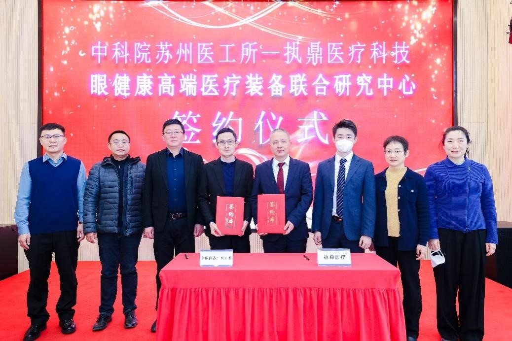 2022年12月27日上午,中国科学院苏州生物医学工程技术研究所(以下简称:中科院苏州医工所)与执鼎医疗科技(杭州)有限公司(以下简称:执鼎医疗)在杭州签署战略合作协议,双方共同创建“中科院苏州医工所-执鼎医疗科技眼健康高端医疗装备联合研究中心”。双方将聚焦眼科医疗器械行业,致力于眼科临床应用领域新技术的创新与突破,造福广大眼病患者。