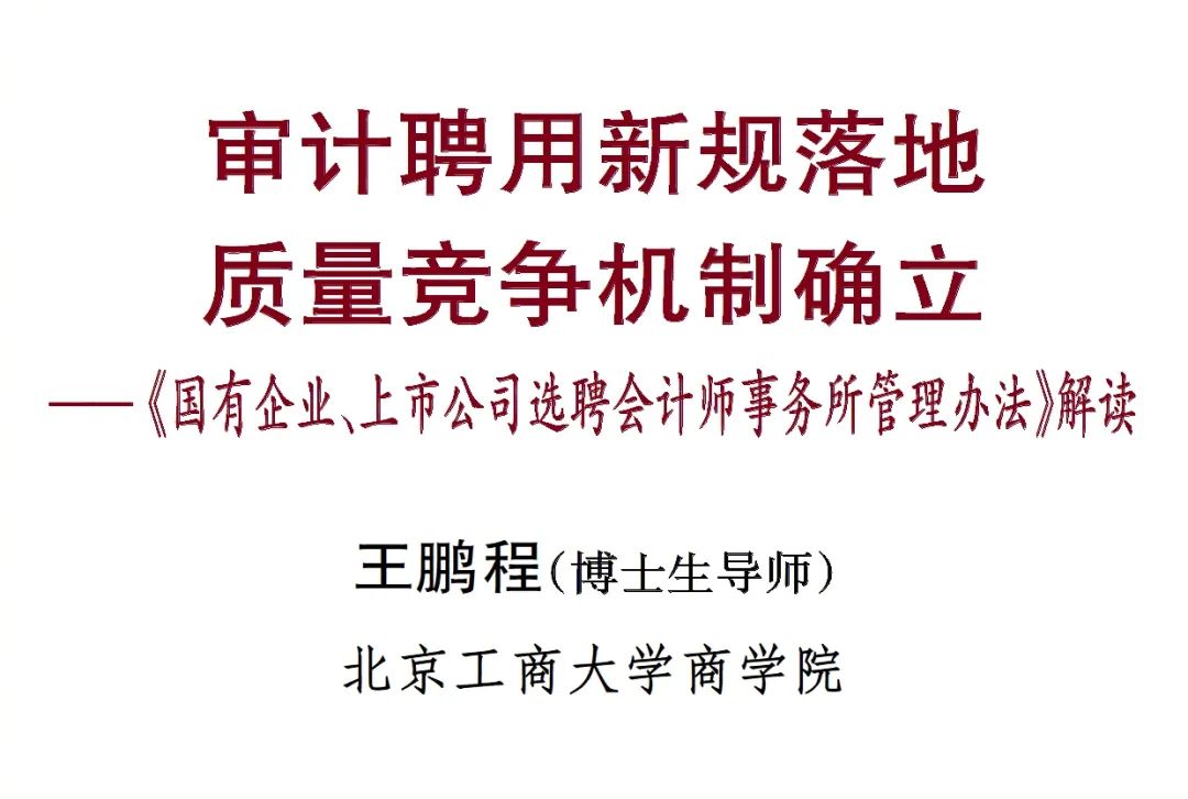 相信,随着《办法》的实施,《办法》适用范围的不断拓展,《办法》相关要求的不断优化,企业选聘会计师事务所的行为将日益规范,审计市场乱象一定能够得到根治,低价恶性竞争一定能够得到有效遏制,健康有序的审计市场将为高质量审计提供有力的支撑。