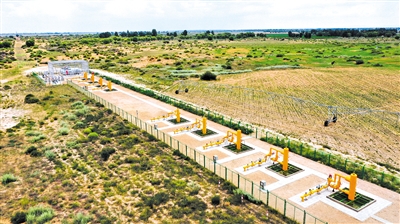 中国石油长庆油田苏里格南作业分公司的无人值守智能远程开关丛式井组(无人机照片)。记者 王鹏 摄
