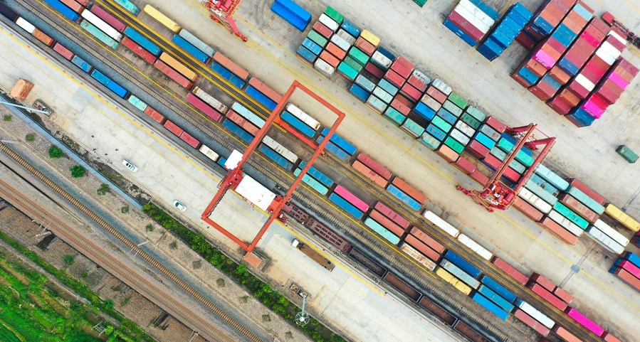 9月16日拍摄的中哈连云港物流合作基地(无人机照片)。新华社记者 殷刚 摄