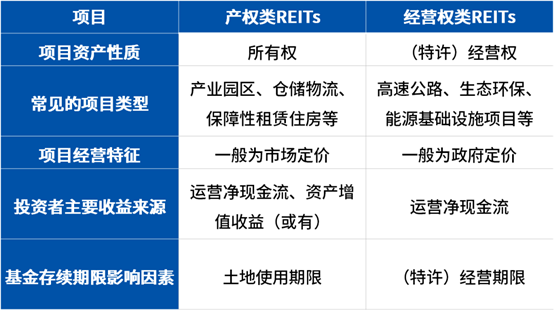 这两类公募REITs持有的基础设施项目,在资产性质、收益来源、项目存续期限等方面分别具有各自的特点。