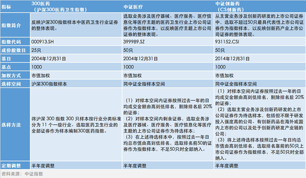 【要点:300医药、中证医疗、中证创新药编制方法各不相同,各有定位】