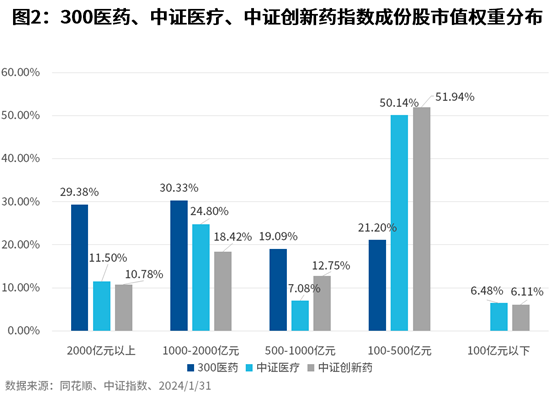 【要点:300医药偏向大市值,中证医疗、中证创新药偏向中小市值】
