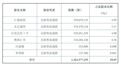 公告显示,截至8月30日,汇能海投及其一致行动人合计持有股份已达20.05%,汇能海投及其一致行动人前述不具有表决权的股份已超10亿股,约占上市公司总股本的15.05%。