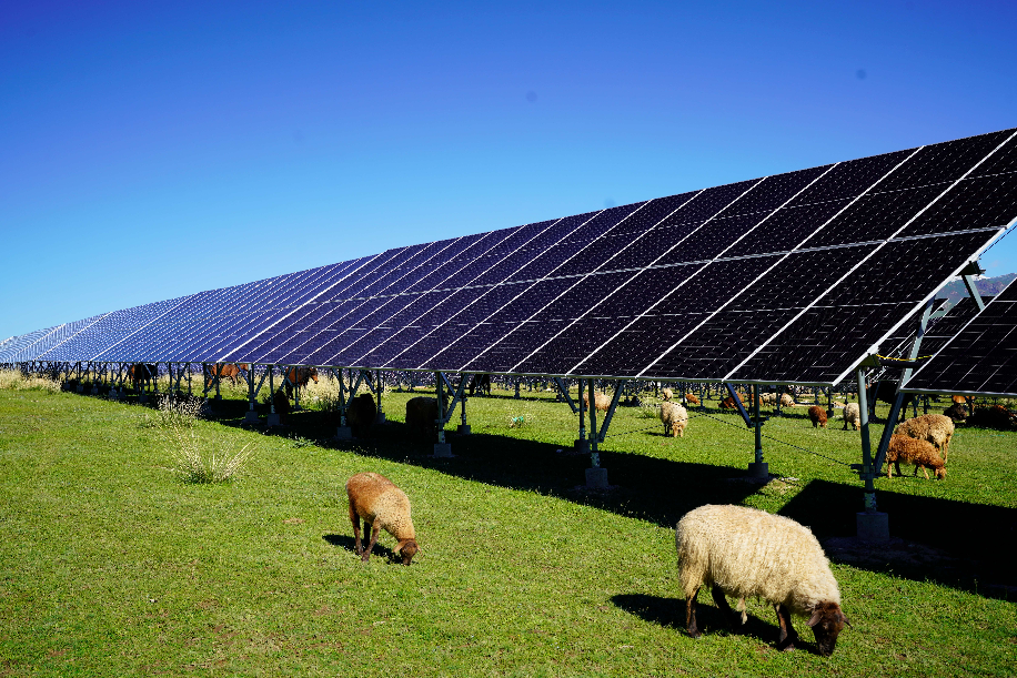 中国绿发建设的新疆尼勒克风电光伏一体化项目,在建设期坚持绿色施工,采用高支架、大间距等生态友好型设计,为野生动物开辟迁徙通道。施工完成后及时恢复原有植被地貌,开展生物多样性监测与保护工作,通过推广“牧光互补”,在实现土地资源高效利用同时,兼顾生态环境保护。