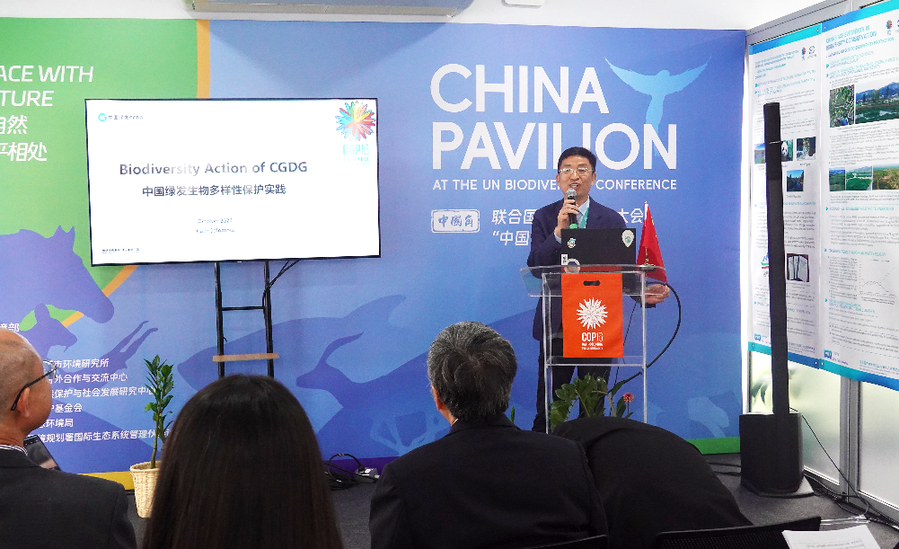 中国绿发代表在边会上发表主旨演讲,介绍公司近年来开展生物多样性保护,打造生物多样性保护领跑企业的实践成果,发出中国企业在生物多样性保护领域担当作为的国际声音。