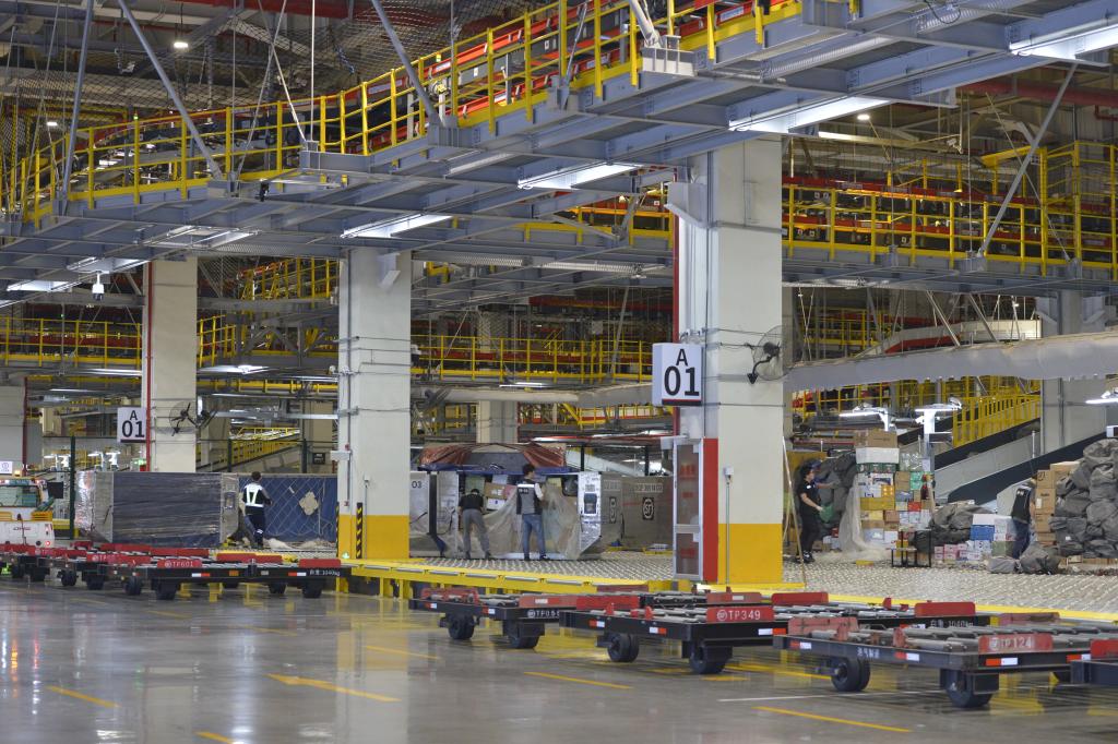 6月2日凌晨,正在作业的顺丰转运中心内部一角。新华社记者刘力航 摄