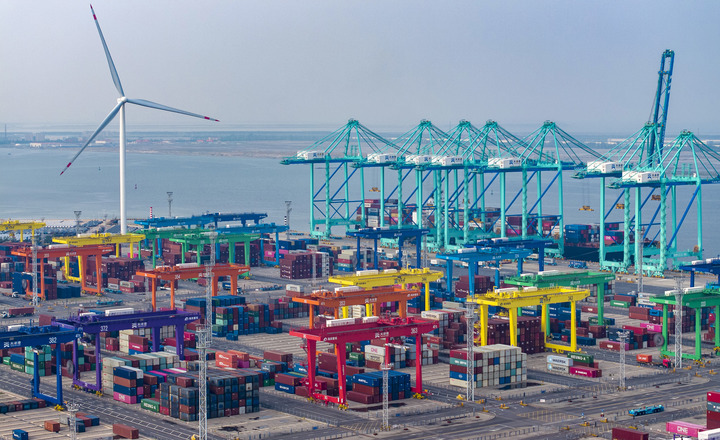 天津港“智慧零碳”码头。(新华社记者赵子硕摄)