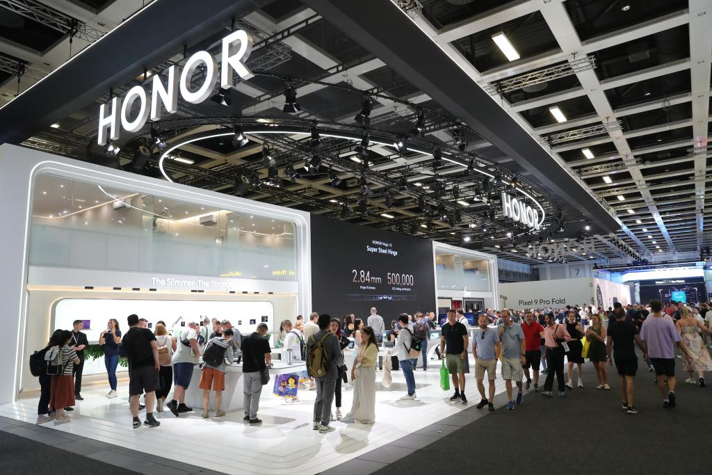 这是9月6日拍摄的德国柏林国际消费电子展荣耀展区。此次展会有不少中国企业携最新产品和技术亮相。新华社记者杜哲宇 摄