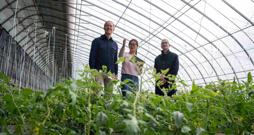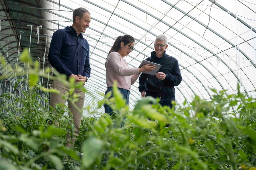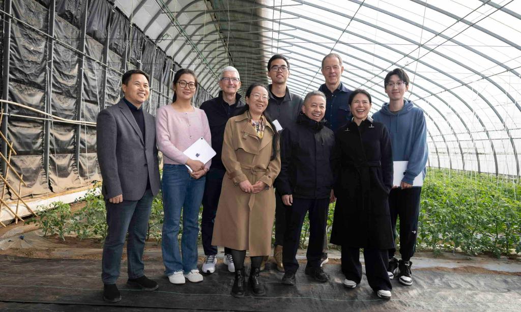 在种植番茄的大棚内,中国农业大学学生李慧敏向库克和苹果公司首席运营官杰夫·威廉姆斯介绍,自己来自北京门头沟区清水镇的“科技小院”,她们的团队正结合中国农业实际,开发一款新的应用。