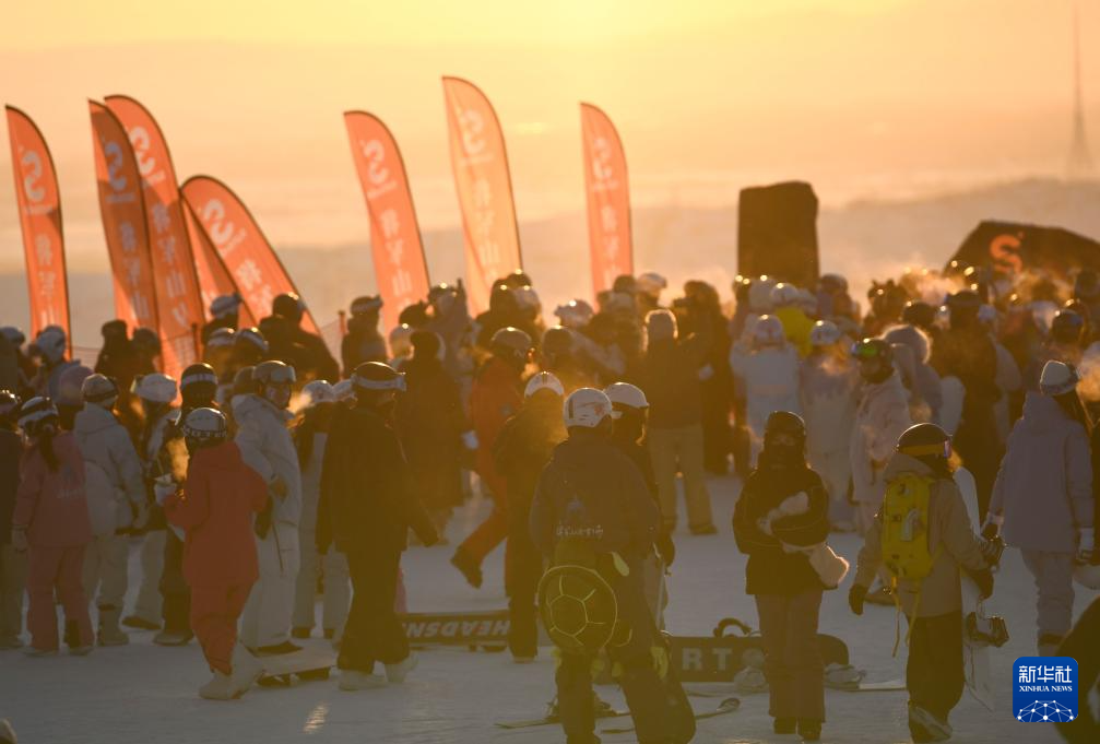雪友在新疆阿勒泰将军山国际滑雪度假区参加“夕阳派对”(2025年1月28日摄)。新华社记者 胡虎虎 摄