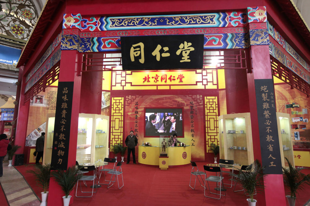 首届北京中医药文化博览会上拍摄的“同仁堂”集团展台(2011年12月10日摄)。新华社发