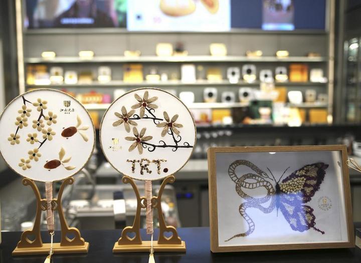 这是2月25日拍摄的同仁堂知嘛健康北京正大店内员工们用中草药制作的工艺品。新华社记者 朱唯希 摄