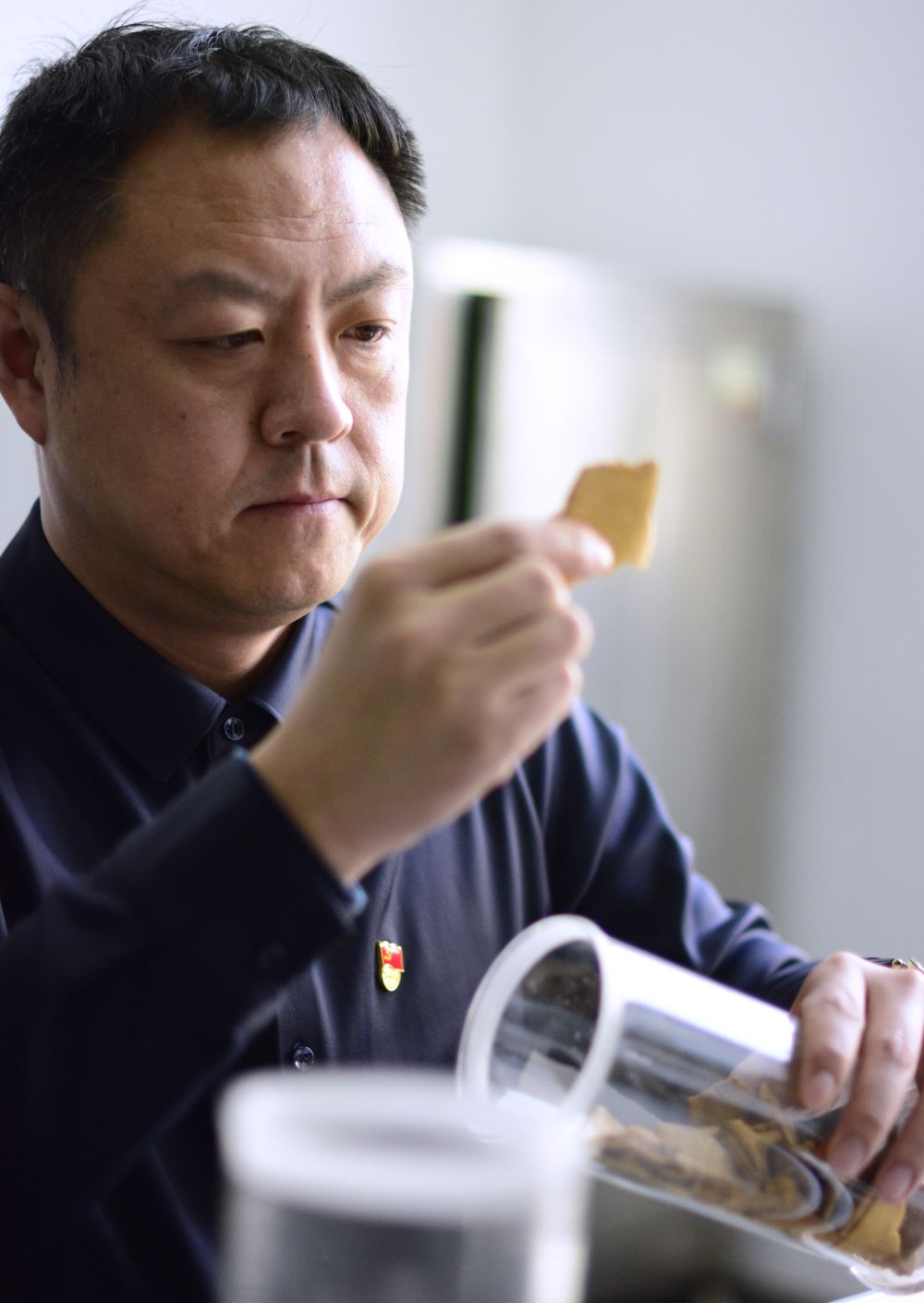 2月23日,同仁堂股份有限公司药材鉴别首席技师郭朝晖在检验中药材原材料。新华社记者 李欣 摄
