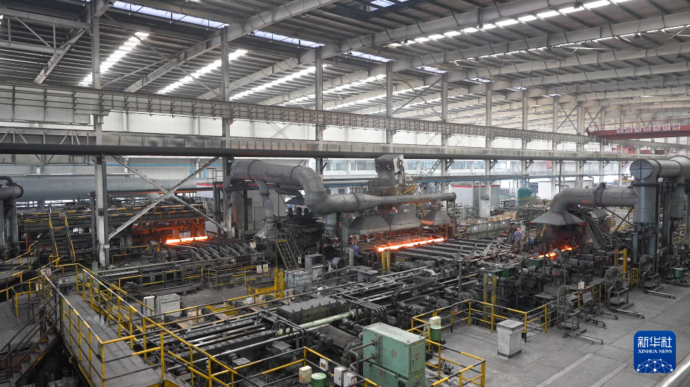 这是3月11日在河南林州凤宝管业有限公司114厂拍摄的无缝钢管生产场景。新华社记者 杨静 摄