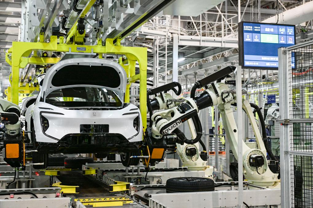 3月6日在位于重庆市渝北区的长安汽车数智工厂总装车间拍摄的自动化生产作业现场。新华社记者 王全超 摄
