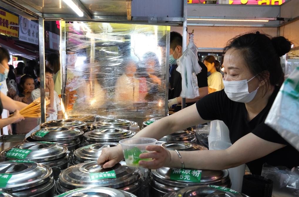 图为广西南宁埌西夜市摊主正在销售糖水。新华社记者 邹雨沁 摄