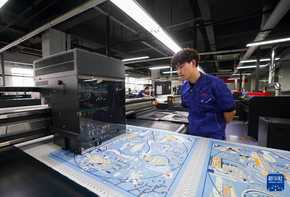 4月24日,工人在万事利双面数码印花工厂作业。新华社发