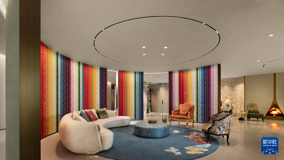 4月24日在万事利科创中心拍摄的丝绸艺术家装场景。新华社发