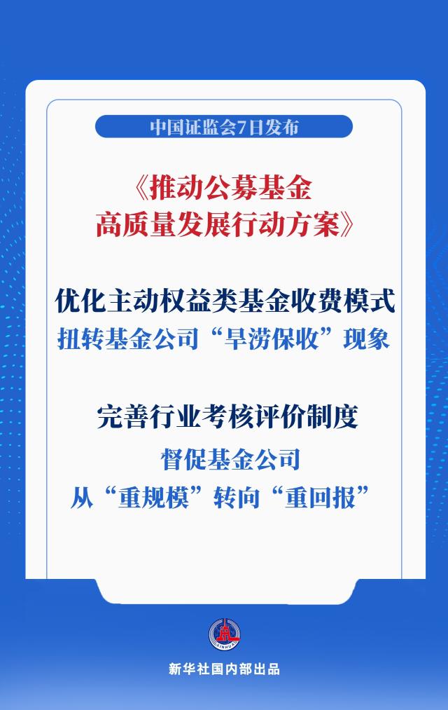 证监会当日对外发布的《推动公募基金高质量发展行动方案》,对收费模式、考核评价制度等进行调整,以扭转基金公司“旱涝保收”现象,督促基金公司从“重规模”转向“重回报”,公募基金行业迎来系统性变革。